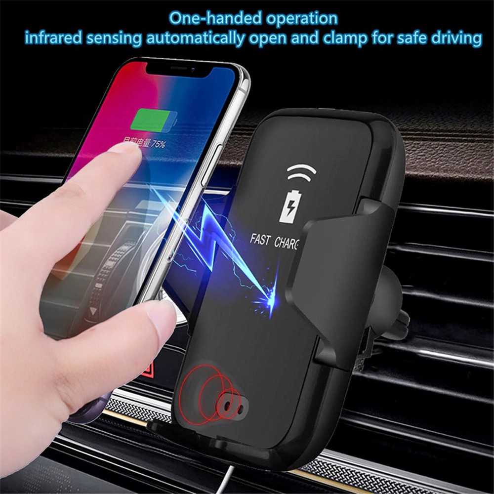 Features: 【Automatic induction】: Wireless car charger keep the automatic induction and touch sensing. The two clips will automatically open and grip your phone when you put the phone close to the holder. Easy to use and safe driving. Fully automated wireless car charger with build-in advanced infrared sensor. 【Adjustable Viewing】: Air vent mount and suction mount installation, employs a telescopic arm to allow for closer device viewing You could adjust the holder enable to hold the phone in a perfect viewing angle while driving. The 360°rotating ball joint on both mounts enables flexible viewing angles while driving. 【SMART BUILT IN CHIP】: Built-in IC chip intelligently detects the current needed, Voltage protection, Temperature control, and more advanced safety protection. (It's normal for your phone to get warm when wireless charging. 【Universal Mounting】: Universally holds all phone and case combinations, can be mounted on any flat hard surface, for example: Office table, car. 【Compatible With】: for iPhone 11/11Pro Xs Max / Xs / Xr / X / 8 / 8 Plus, etc. for Samsung Galaxy S6 edge / S7 edge / S8 / S9 / S10 / Note 5 / Note 7, etc. for Huawei Mate30/Mate30 Pro Mate RS / Mate20 Pro / Mate 20 RS, etc for Xiaomi Mix 2S / Xiaomi Mix 3 / Xiaomi Mi 9, etc. All the phones that support Qi wireless charging standard Other phones such as for iPhone 5/6/7 need extra Qi receiver patch to get it work. With cases (not metal) between 2-4mm on the phone, can work without any problem.