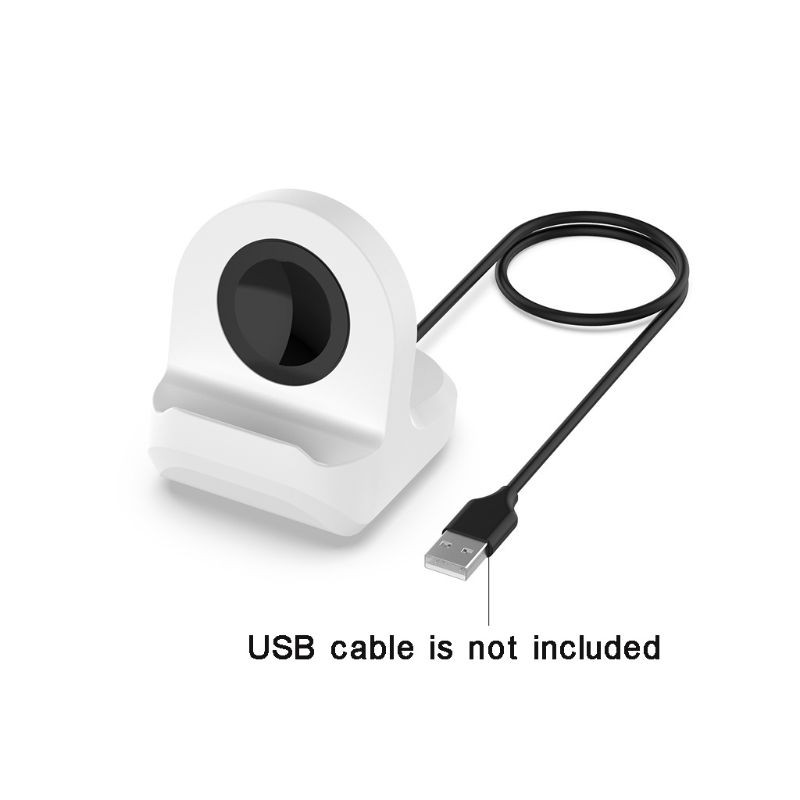 Specifications: Item Type: Charge Stand For amsung Galaxy Watch Active SM-R500 Wireless Charger cable Material: Silicone Color: Black,White(Optional) Size: 65x60x57mm Quantity: 1 PC (other accessories demo in the picture is not included)