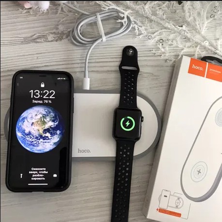 - Đế sạc không dây đa năng 2in1 Hoco CW20 max 10W dành cho điện thoại / đồng hồ thông minh - CW20 Wisdom 2-in-1 wireless charger for mobile phones / iWatch multiple circuit protection Thông số kỹ thuật: 1. Đầu vào: DC5V / 2.0Aб 9V / 2.0A tối đa. 2. Công suất 1: 5W / 7.5W / 10W (điện thoại di động). Đầu ra 2: 2W (iWatch). 3. Khả năng tương thích: tương thích với 99% điện thoại thông minh sạc không dây, iWatch 1 đến 4. 4. Chất liệu: ABS + PC. 5. Kích thước: 200 * 92 * 10 mm, trọng lượng: 125g. 6. Bảo vệ nhiều mạch, sử dụng chuẩn giao thức QI.