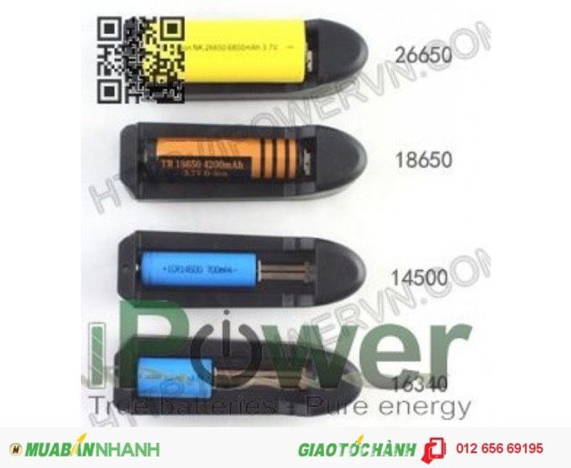Cỡ pin: AA, AAA, C, RCR123, 18650, (Lithium Ion)