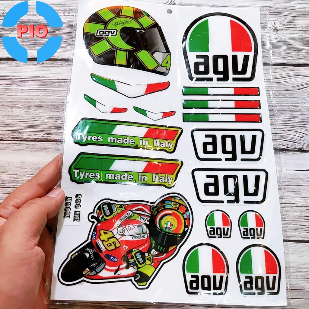 [Decal xe] Bộ Tem AGV Dập Nổi Cao Cấp Dán Xe Máy, Ô Tô, Mũ Bảo Hiểm, Chống Thấm Nước, Chống Bay Màu