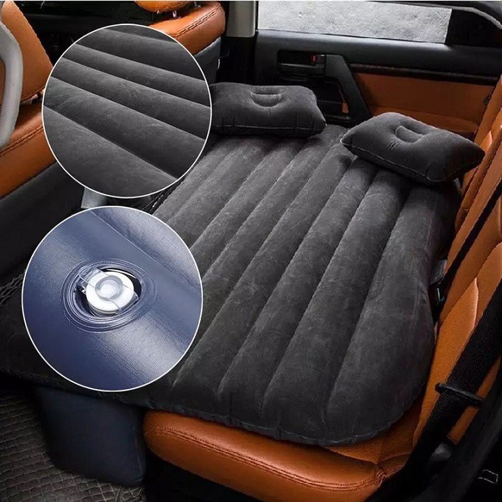 Đệm hơi ô tô có dụng cụ bơm hơi đi kèm, chỉ cần bạn bơm cứng và đặt vào băng ghế sau.