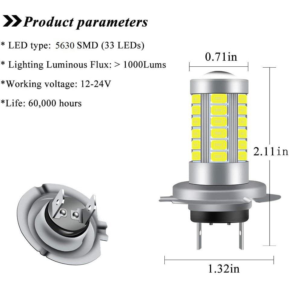 Giới thiệu Đèn Led H7 Dùng Thay Thế Đèn Sương Mù, Đèn Chiếu Hậu, Xi Nhan Ô Tô, Xe Máy 33 Mắt Chip 5630
