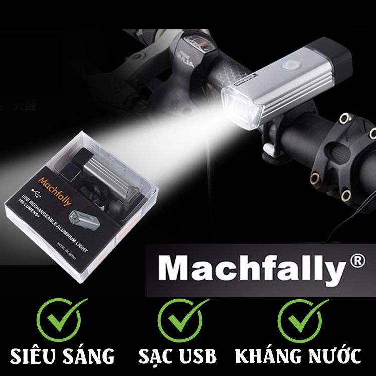 Đèn pha Xe đạp siêu sáng Machfally Đặc điểm : Hợp kim nhôm Megie siêu nhẹ & bền Bóng đèn Led 5W Các chế độ sáng gồm : Sáng mạnh (2h), Sáng vừa (6h), Nháy sáng (4h), Chớp sáng ( 10h) Trọng lượng : 60 gam, kích thước 65*28*23mm Thời gian sạc 1-2h ; >10% ( màu xanh ) ; < 10% ( màu đỏ ) , khoảng cách sáng 158m >> Cách sạc : Rút nắp nhựa ở cuối đèn & cắm vào cổng USB Laptop, máy tính or pin sạc dự phòng, sạc điện thoại có cổng usb