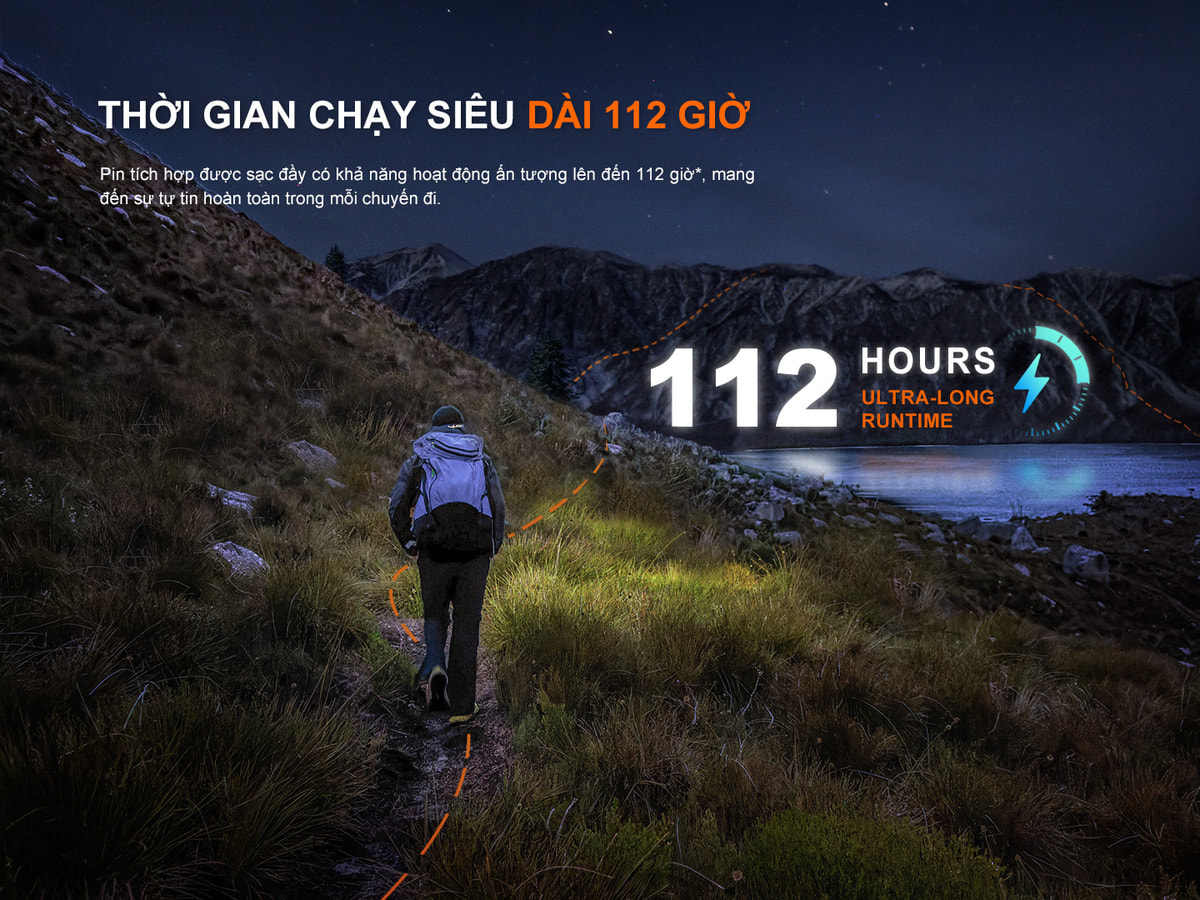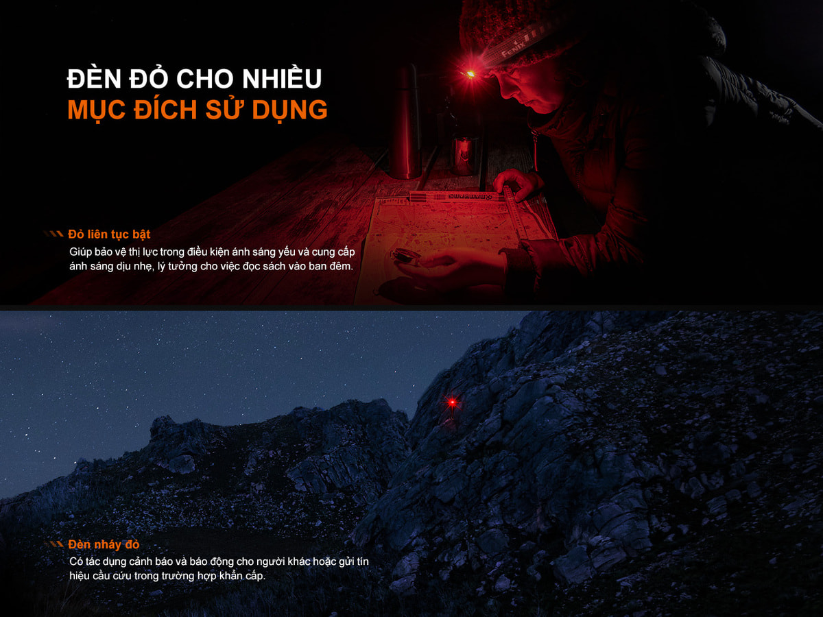 LED đỏ công suất thấp, giúp bảo vệ thị lực ban đêm, đọc bản đồ hoặc dùng trong lều mà không làm chói mắt người khác.Đèn tích hợp pin sạc Li-ion 950mAh (có thể sạc lại nhanh chóng qua USB Type-C) và có 6 chế độ chiếu sáng đa dạng. Hệ thống bộ nhớ thông minh giúp đèn ghi nhớ mức sáng cuối cùng đã sử dụng, và chế độ khóa an toàn giúp tránh vô tình bật đèn khi cất trong balo.