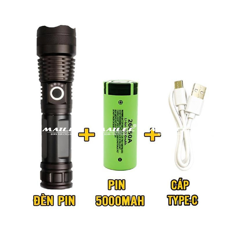 Đèn pin siêu sáng chip led công suất cao 20W pin 5000mah sử dụng 4 đến 6 giờ sáng vỏ nhôm siêu nhẹ Mai Lee