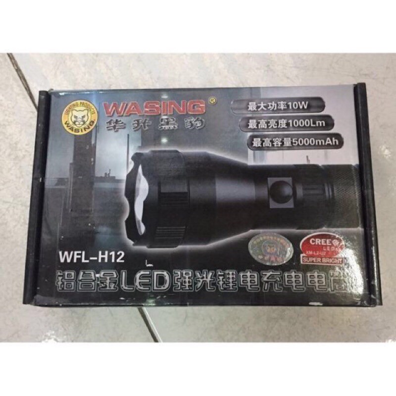 Đèn pin Wasing WFL-H12 sử dụng bóng đèn LED Cree XML2 U2 ( Cree là thương hiệu bóng đèn LED uy tín hàng đầu và được sử dụng phổ biến trong các sản phẩm đèn pin cao cấp) với cường độ nguồn sáng 1000 lumens. Chóa đèn to sâu giúp khả năng hội tụ ánh sáng cao nên ánh sáng của chiếc đèn pin Wasing WFL-H12 có thế chiếu xa tới 1.000m. Wasing WFL-H12 sử dụng pin sạc với dung lượng 26650 -3.7V-5000mAh nên người dùng có thể sự dụng trong khoảng thời gian từ 3-10h. Với thiết kế rất đẹp, độ sáng cực khủng Wasing WFL-H12 là một dụng cụ không thể thiếu cho công tác tuần tra, thám hiểm, du lịch. Mã sản phẩm: WFL-H12 Đèn pin siêu sáng Wasing WFL-H12 Bao gồm: gồm 1 đèn pin Wasing WFL-H12, 1 sạc pin Adaptor, 1 pin sạc Wasing 26650 -3.7V-5000mAh, 01 dây đeo) Thông số kỹ thuật: - Mã SP : WASING WFL-H12 - HSX: WASING - Xuất xứ : China - Bóng LED siêu sáng - Thấu kính phẳng - Chiếu xa 1000m - Sử dụng pin : Lithium sạc Li-Ion 26650- 3.7v-5000mAh - 3 chề độ : sáng rõ - sáng mờ - pha nhấp nháy