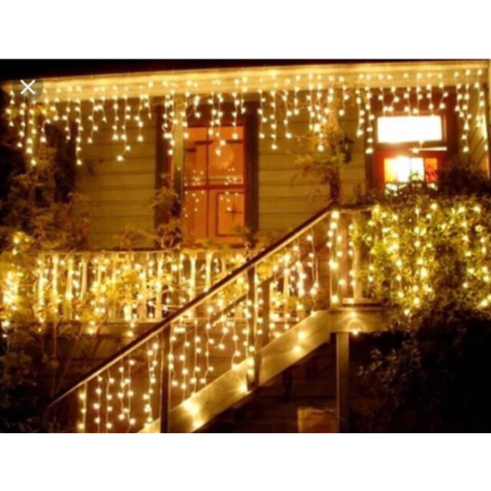 Đèn rèm mành 5x0.6m gồm 50 dây thả xuống , đèn led rèm mưa màu vàng ấm (trắng)