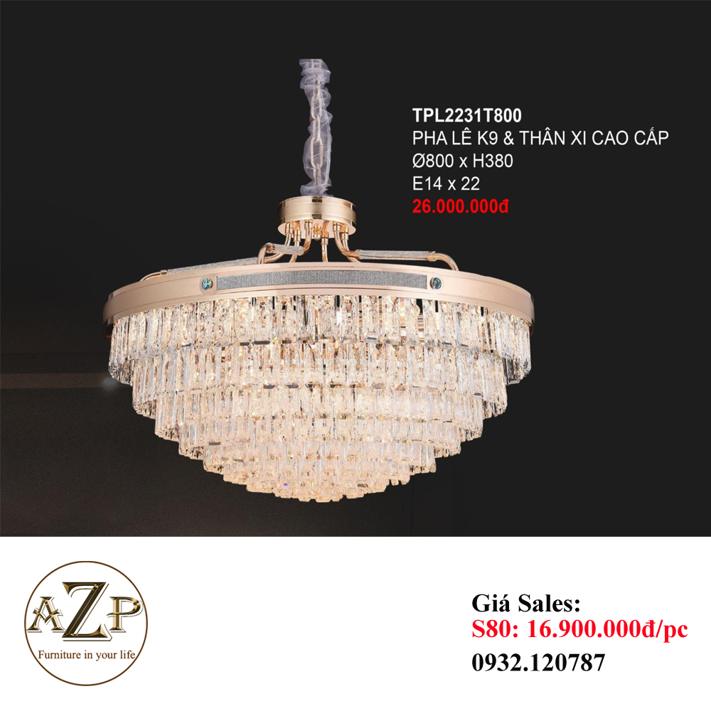 ĐÈN THẢ TRẦN PHA LÊ / ĐÈN THÔNG TẦNG TRANG TRÍ PHÒNG KHÁCH / PHÒNG NGỦ / CẦU THANG / KHÔNG GIAN SANG TRỌNG AZP-2231 phong cách đương đại, hàng nhập khẩu AZP