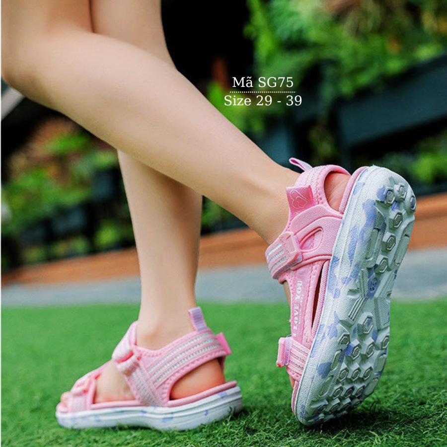 Dép sandal bé gái đi học đi biển 2 màu tím hồng quai hậu dán thời trang mềm nhẹ, đế êm chân phù hợp cho trẻ em học sinh 5 - 12 tuổi SG75