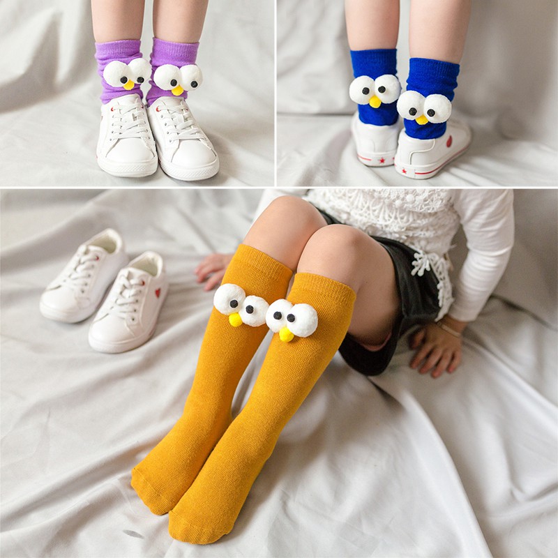 Giới thiệu Đôi Tất Cotton Dài Màu Trơn Trang Trí Đôi Mắt Dễ Thương Cho Bé