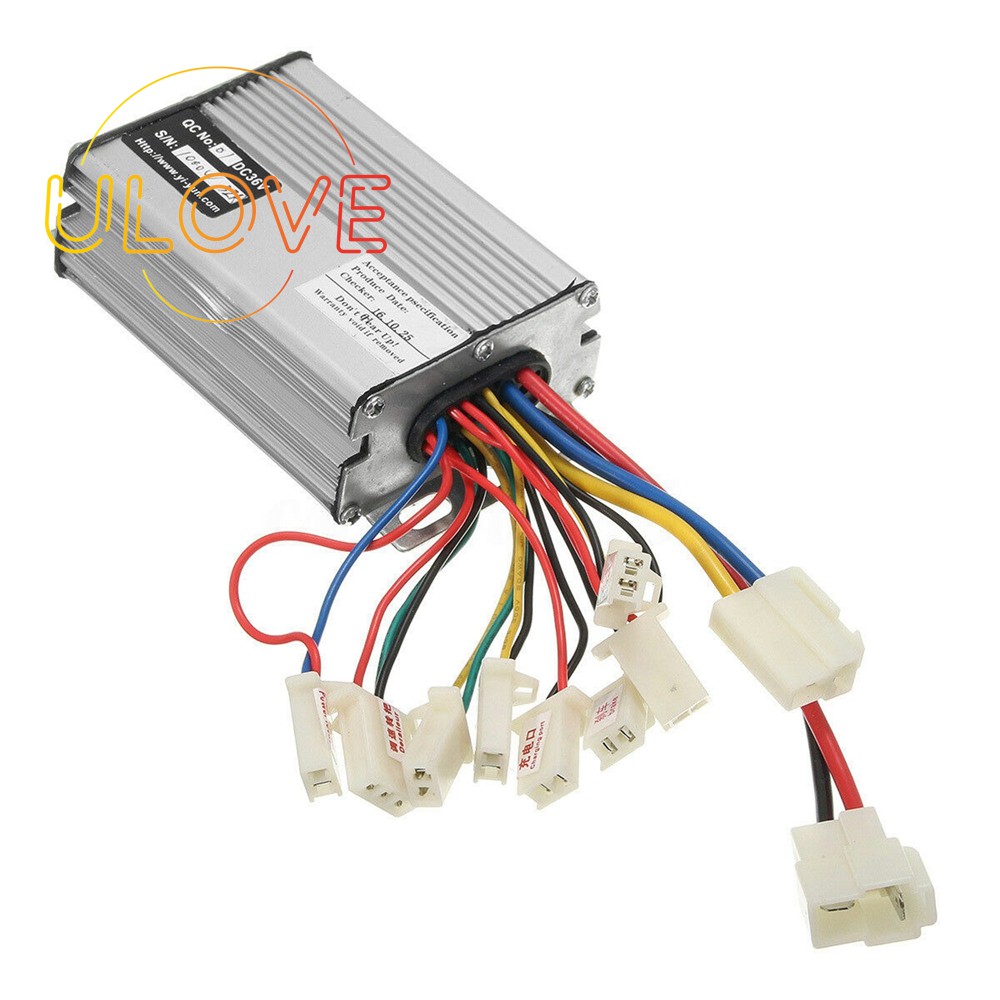 el: Controller Rated power: 1000W Compatible for: 700-1000W motor To the motor to work at least first connected to the first four connectors, the first controller on the two thicker blue and white lines connected to the motor, in which the blue line of the red motor, white line to the motor black line. Followed by the controller of the two red and black lines connected to the battery, the red line then the battery cathode, black line connected to the negative. The third re-connected to the speed control to the joints, (speed control turn to have three lines, be sure the red line on the red line, black line on the black line phase). Once again connected to the electric lock, open the door locks, turning the motor can run. Notes: Do not take the wrong power cord, or will burn. Voltage: 36V colour:Sier Material:Aluminum alloy size:9*7*3.3cm Package Contents: 1 * Brush motor controllerOnly the above package content, other products are not included. Note: Light shooting and different displays may cause the color of the item in the picture a little different from the real thing. The measurement allowed error is +/- 1-3cm.