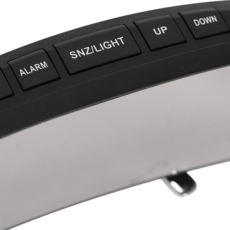 Green LED display with 2 slots: Digital alarm clock with special curved LED screen, you can clearly see the time from multiple angles. The LED light automatically dims in night e and lights up during the day. Mute function:The anti-loose compartment time is 5 minutes. In the alarm e, press the ALARM button to set the alarm. Press the ALARM button 3 times to enter the sleep interval setting interface. 05 flashes. Press the UP or DOWN button to set the interval time to 5-60 minutes. Simple operation:The design of this watch is very simple. We only need to keep three function buttons and two snap switches to complete all operations. A digital clock, suitable as a gift for children and teachers. Temperature display:In the time e, press the e twice to enter the temperature display e. Press DOWN to switch the temperature display Celsius / Fahrenheit e. Temperature range: -10 Celsius- 50 Celsius (14 Fahrenheit-122 Fahrenheit) Night e setting (18: 00-06: 00) 5 function buttons (E, ALARM, SNZ / LIGHT, UP, DOWN) Timememory function (3 * AAA battery for time memory) Power consumption: 3 * AAA batteries (not included) USB charging cable (included) Basic operation:USB cable is on or charging, LED light is on to hear Bl sound Battery switch, press SNZ / LIGHT button, LED light will be on for 16 seconds When the USB cable is plugged in, the LED is always on. Function button:Press the e button switch to display: time-date-temperature-night e on / off. Press the button to switch the lights in 2 levels. After work e, press the ALARM key to activate / deactivate the alarm function Color:black Material:ABS Size:17 * 8cm Package Contents: 1*Alarm Clock 1 * usb data cable 1 * InstructionsOnly the above package content, other products are not included. Note: Light shooting and different displays may cause the color of the item in the picture a little different from the real thing. The measurement allowed error is +/- 1-3cm.