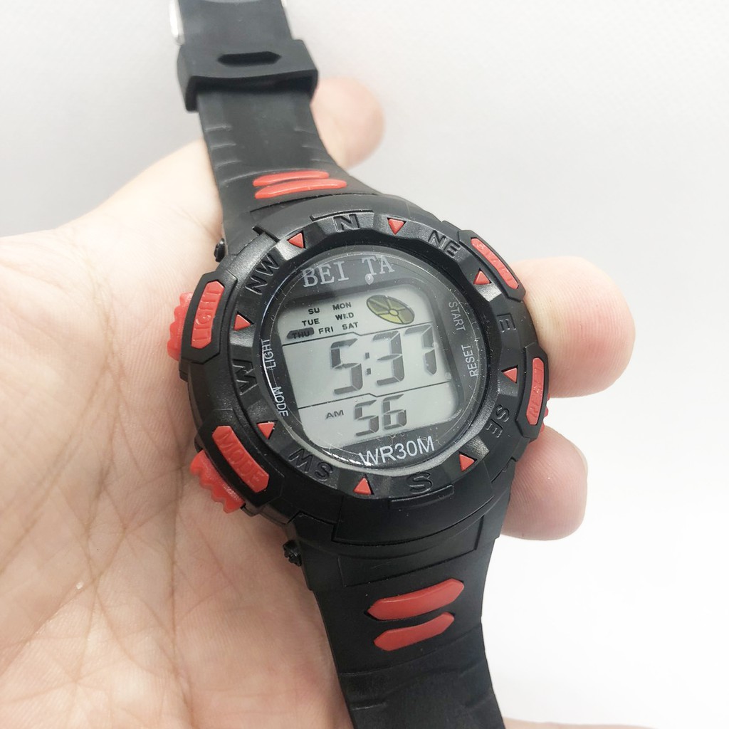 Thời trang trẻ em & trẻ sơ sinh > Phụ kiện trẻ em & trẻ sơ sinh > Đồng hồ || Đồng hồ điện tử thể thao trẻ em Beita dây vỏ cao su mặt tròn size 36mm đa chức năng, đèn led nhiều màu chống nước BT01