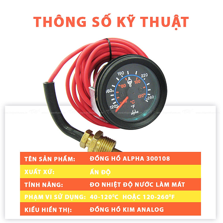 Giới thiệu Đồng hồ đo nhiệt độ nước làm mát ALPHA 300108 dây 1.8m