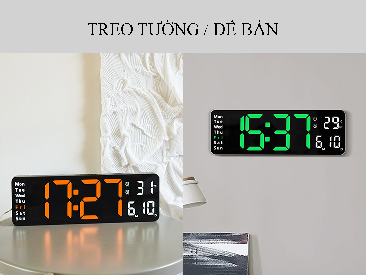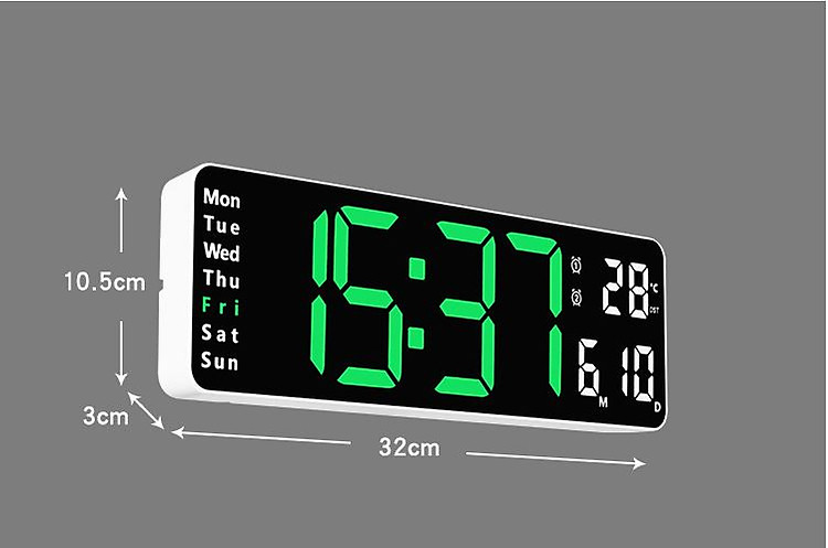 1. Đồng hồ treo tường đơn giản có đèn LED lớn, chức năng chuyển tiếp/đếm ngược độc đáo và cũng có thể hiển thị thời gian/ngày/nhiệt độ/tuần trên cùng một màn hình.