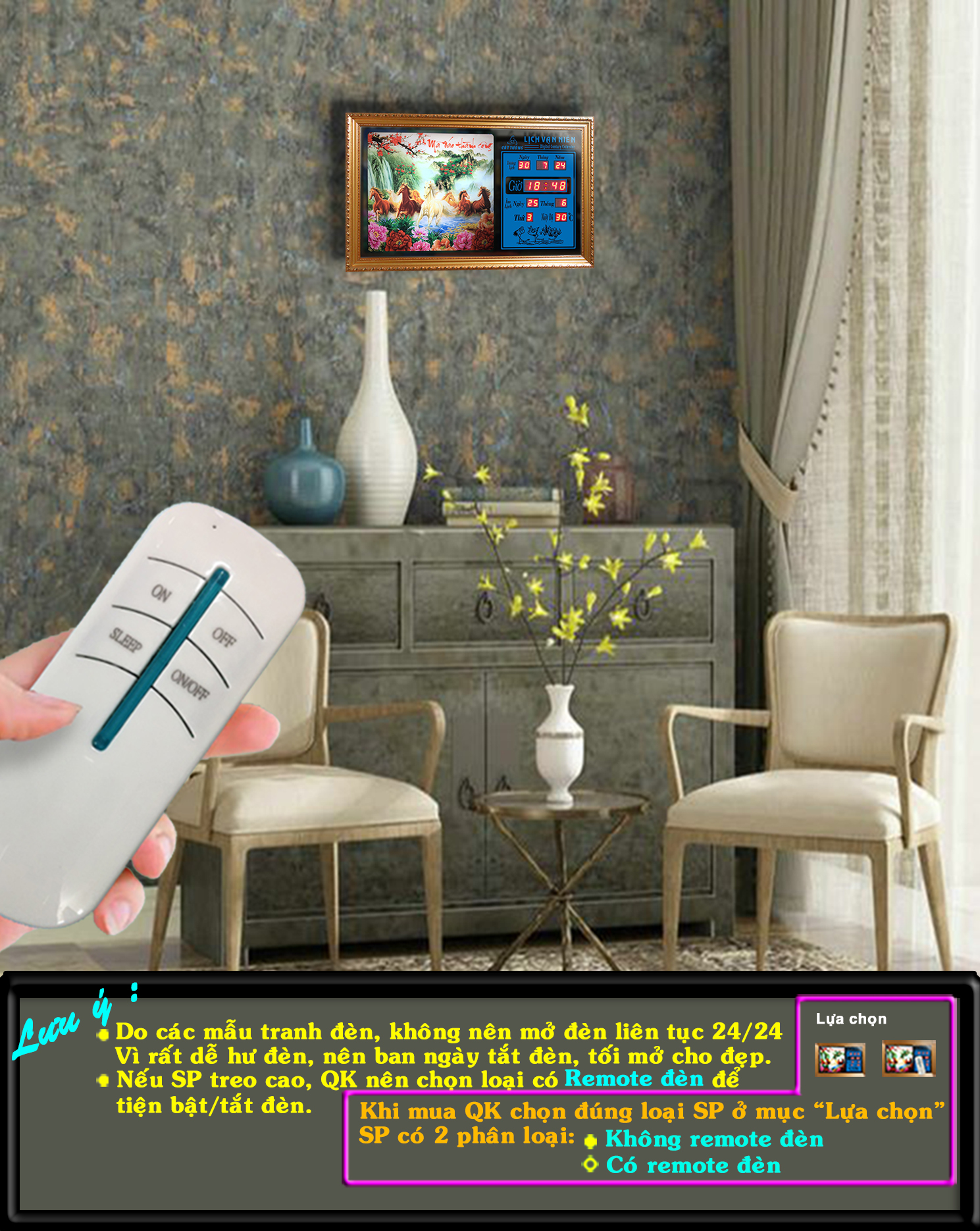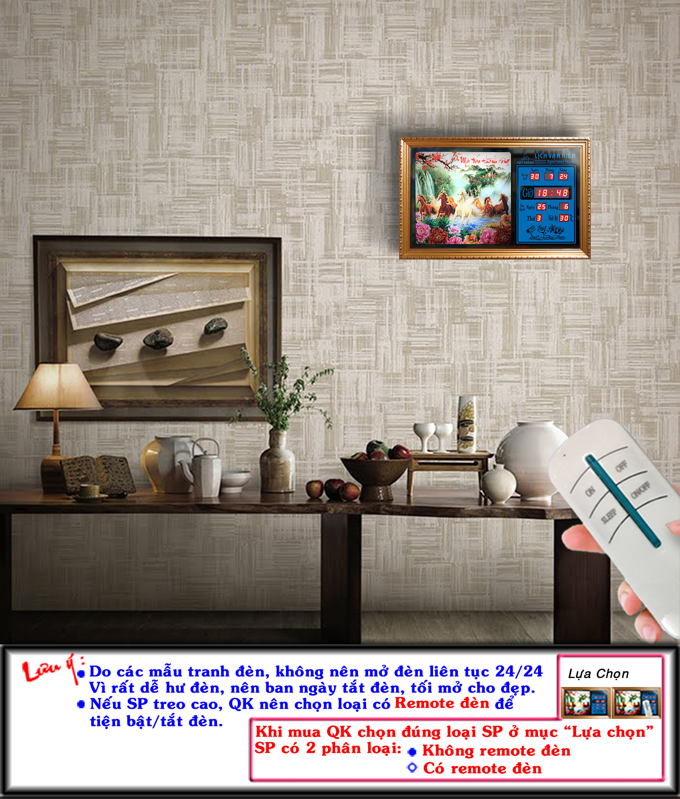 Chú ý: Nên treo LVN-55121 trong phòng khách, phòng làm việc. Không treo trong phòng tắm, nhà bếp, phòng ngủ.