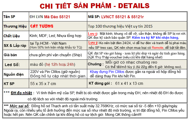 Hơn thế nữa, Hiện nay mẫu đồng hồ LVN điện tử treo tường hiệu Cát Tường của Shop có các cải tiến vượt bật so với thế hệ trước là :