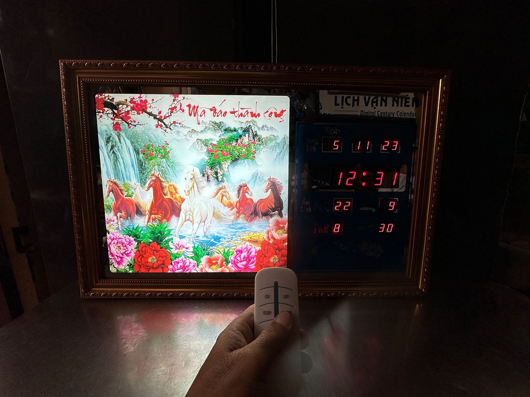 | Model | Đồng hồ Lịch Vạn Niên tranh đèn treo tường 55x35 |