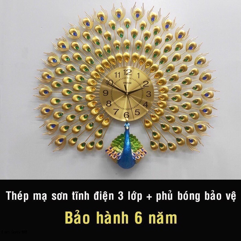 Đồng hồ chim công A83 được SHOUSE đặt nhà máy sản xuất riêng với chất lượng cao cấp gấp đôi loại thường. Đặc biệt động cơ của máy là máy kim trôi không gây tiếng động mang tới sự thoải mái sử dụng. Kích thước của đồng hồ là 72 cm x 72 cm, phù hợp với không gian bất kỳ trong căn hộ, và đủ tạo điểm nhấn nổi bật.