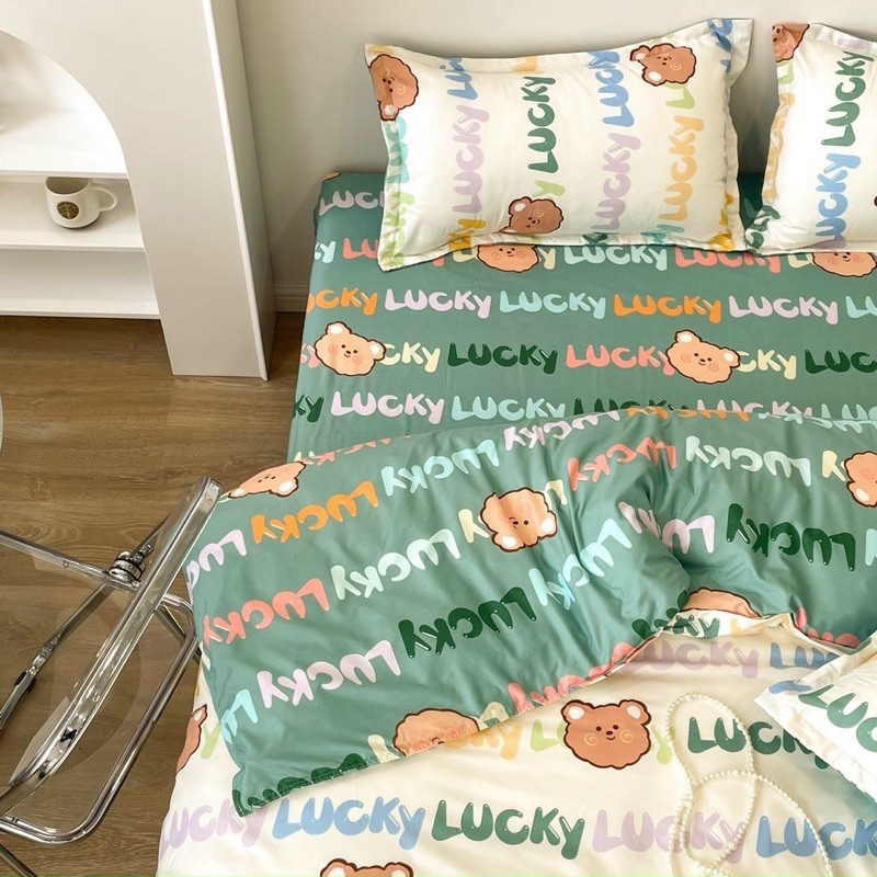 Giới thiệu Bộ Drap & Chăn Phao Cotton Poly Gấu Lucki Xanh