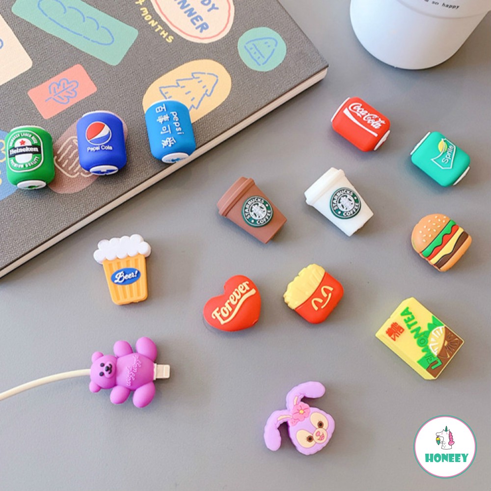 Điện Thoại & Phụ Kiện > Pin, Cáp & Bộ sạc > Cáp sạc và cáp OTG || Drink Photos Cartoon USB Cable Protector for Iphone Cable Charger Wire Holder Organizer Protection