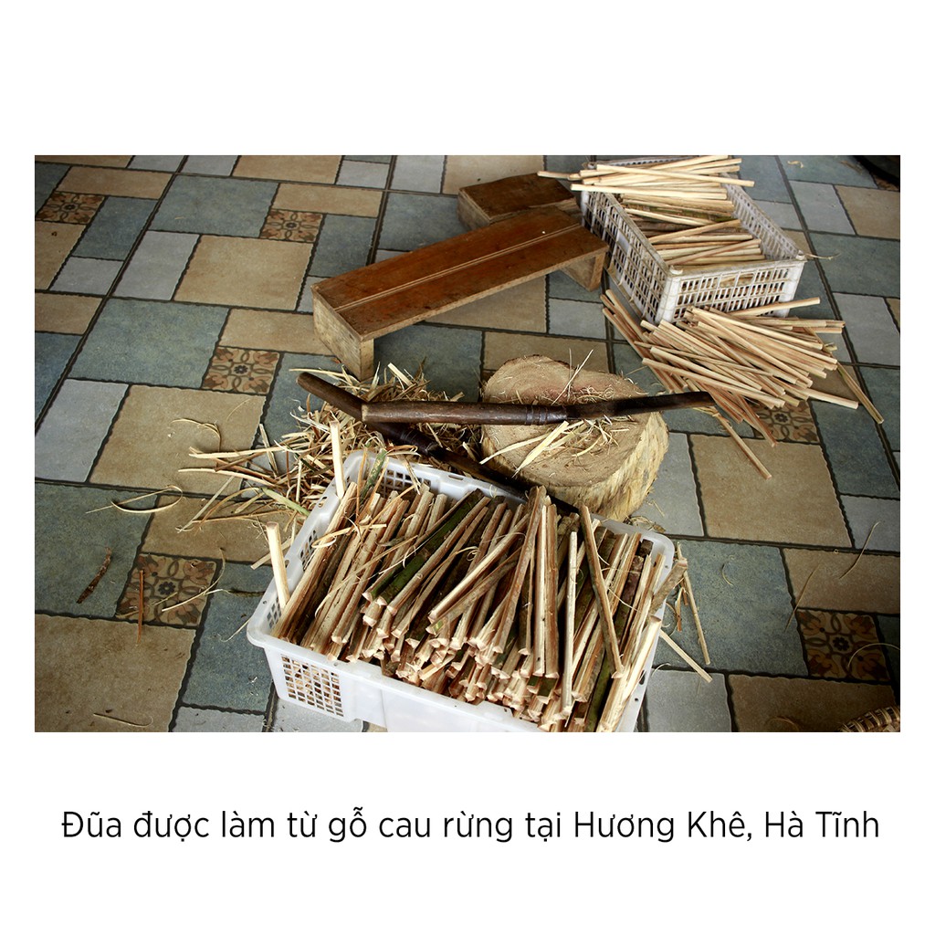 Đũa cau được làm từ cau rừng già, một sản phẩm phụ phát triển từ dự án dầu phộng Hương Khê, Hà Tĩnh.