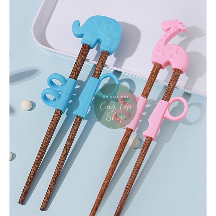 Mẹ & Bé > Đồ dùng ăn dặm cho bé > Đồ dùng cho bé > Đồ dùng ăn dặm || Đũa tập gắp xỏ ngón bằng gỗ đệm silicon cho bé tập ăn 3 giai đoạn