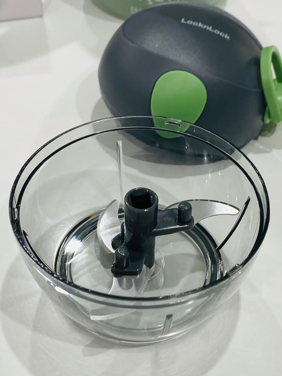 | Hướng dẫn sử dụng | - Cắt thực phẩm: hành tỏi, gia vị thành miếng nhỏ và đặt vào hộp chứa- Cân chỉnh trục giữa của nắp với lỗ của trục lưỡi dao và xoay để khớp cố định- Giữ nắp bằng một tay và nhẹ nhàng kéo bằng tay còn lại để băm thực phẩmLưu ý: Đặt dao thép không gỉ vào hộp để căn chỉnh trục lưỡi dao vào đúng vị trí |