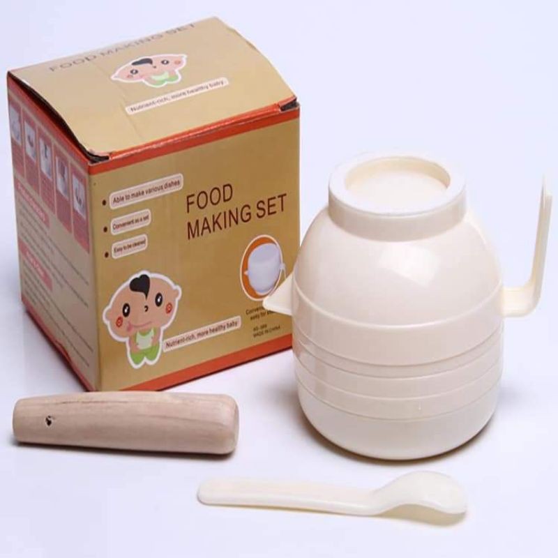 🌷Sản phẩm là một bộ tổng hợp các dụng cụ chế biến đồ ăn dặm tiện ích đáp ứng được các nhu cầu của mẹ: cối, chày, bát, rây lọc, nắp đậy, bàn mài thức ăn, dụng cụ ắt trái cây, thìa nhựa, dụng cụ xắt và dằm thức ăn 2 trong 1.