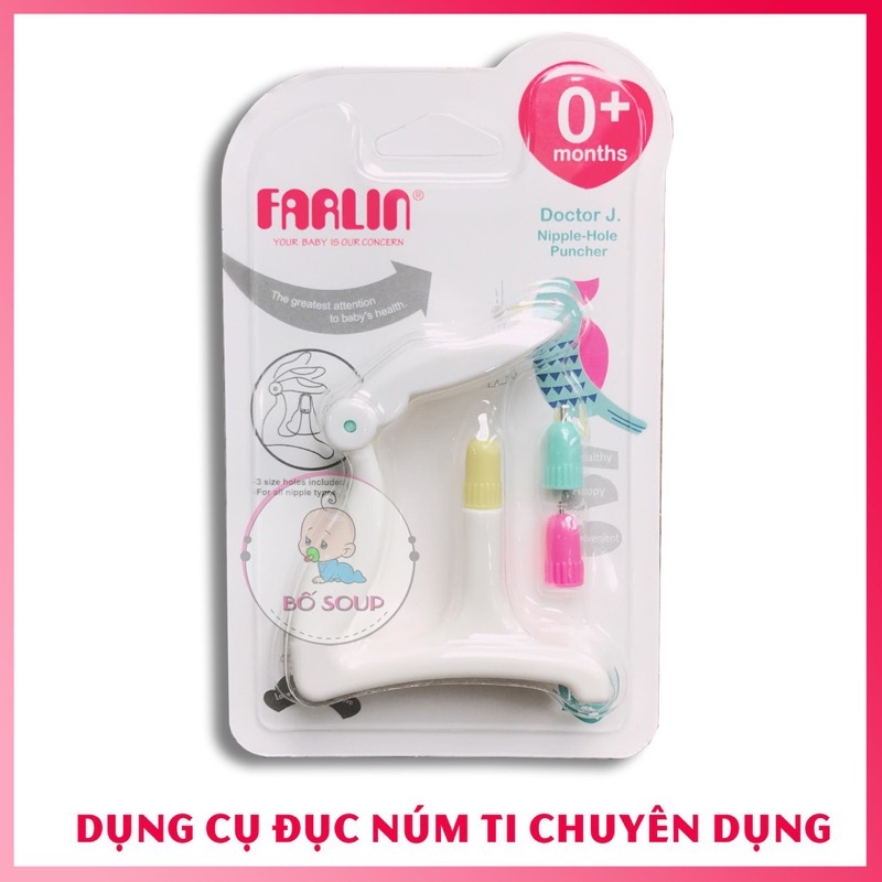 ✅ Dụng cụ đục lỗ núm ty bình sữa Farlin dùng để mở rộng lỗ trên núm ti cho bé một cách dễ dàng thích hợp khi bé lớn hơn, có nhu cầu bú nhiều hơn hay nhu cầu ăn các loại thức ăn khác trong giai đoạn ăn dặm.