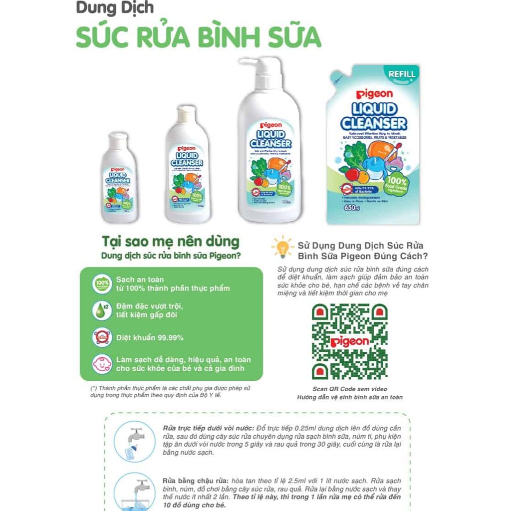 Mẹ & Bé > Sữa công thức & Thực phẩm cho bé > Đồ ăn nhẹ cho bé || Dung dịch súc rửa bình sữa Pigeon 700ml