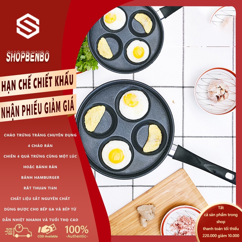 Chảo rán chiên trứng chuyên dụng, 4 khay rán, 1 lần rán 4 quả trứng hoặc bánh rán, hambuger, nấu nhiều món ngon thật tiện lợi