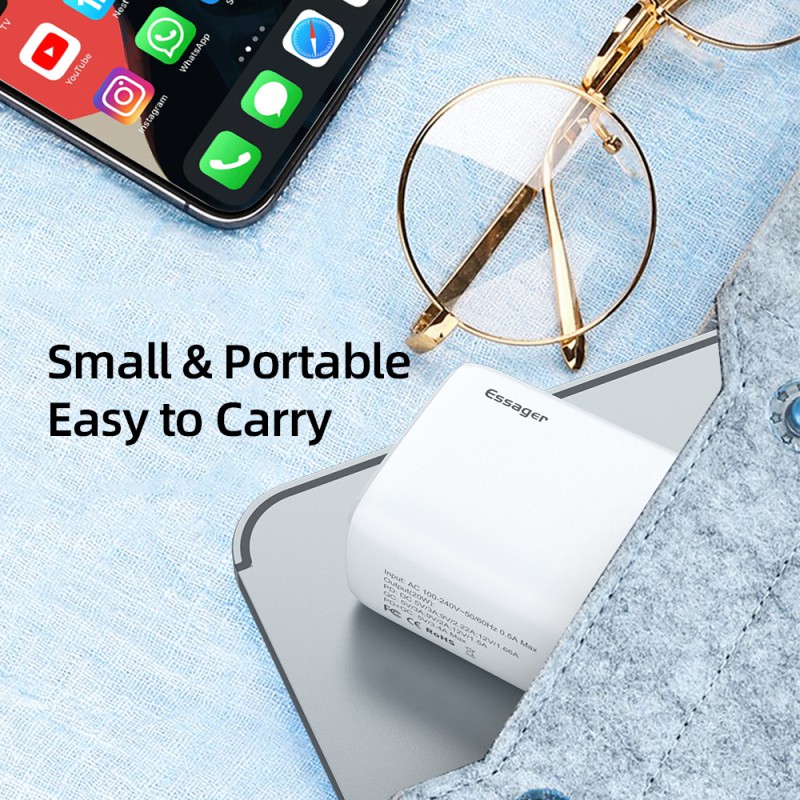 Giới thiệu ESSAGER Cốc Sạc Nhanh Usb 3.0 Qc Pd 20w Cho Iphone 12 Pro Max Pd