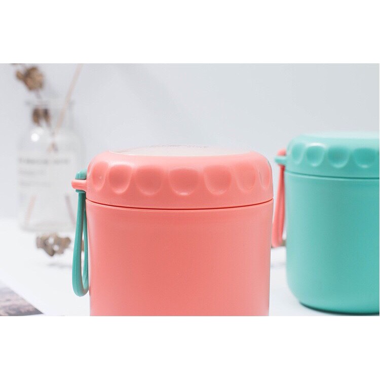 - Ưu điểm * Hộp gồm 2 lớp giúp cách nhiệt và giữ nhiệt rất tốt (thời gian giữ nhiệt từ 4-6h), giữ nóng và giữ lạnh * Miệng hộp rất phù hợp để giữ nóng các đồ ăn như cháo, mỳ. Có thể sử dụng ngay mà không cần bỏ ra bát, kèm thìa gấp gọn * Được thiết kế bằng vỏ nhựa cao cấp, lõi thép không gỉ, không lo có hại đến sức khoẻ