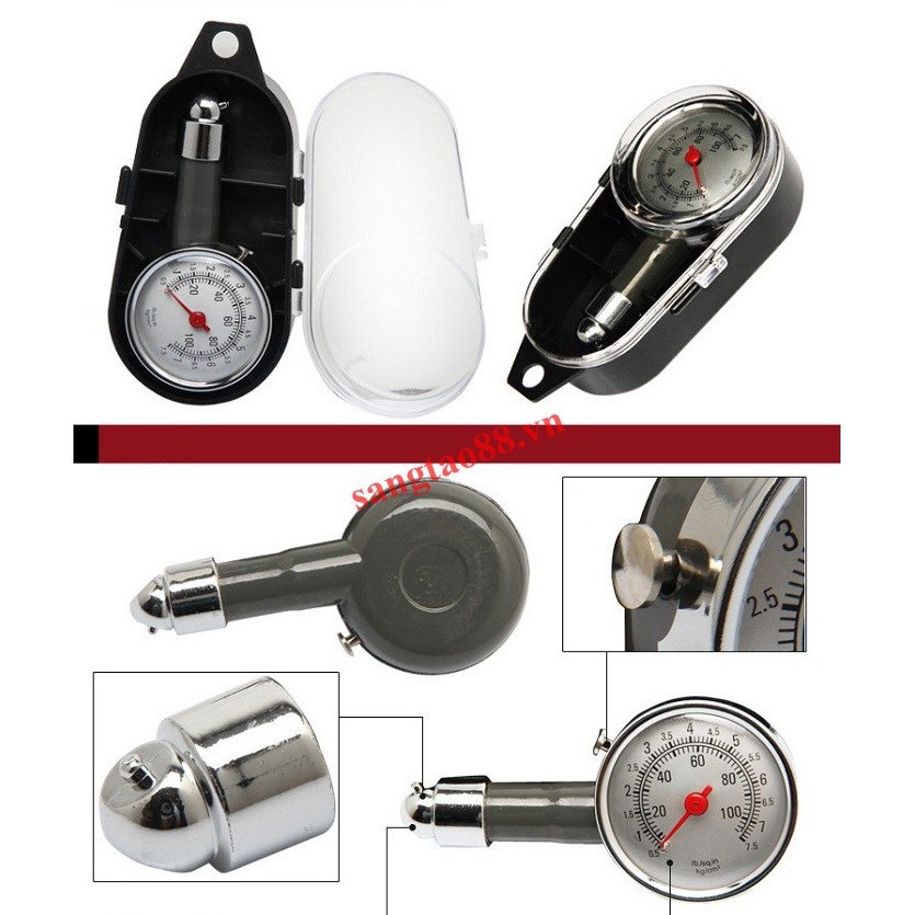 Đồng Hồ Đo Áp Suất Lốp Xe Kiểm Tra Lốp Xe Hơi -Hàng cao cấp Giới thiệu sản phẩm Đồng hồ đo áp suất lốp xe bằng cơ cho ô tô xe máy Có một thực tế là rất nhiều người trong chúng ta không có thói quen kiểm tra áp suất lốp xe trước khi chạy xe, cả xe máy lẫn xe hơi, bởi không phải ai cũng có dụng cụ để thực hiện việc này. Ai cũng biết áp suất lốp là một trong những yếu tố quan trọng nhất ảnh hưởng tới khả năng điều khiển xe, bởi nếu bánh xe quá căng sẽ làm xe dằn xóc nhiều hơn, còn bánh xe mềm sẽ làm tăng sự tiếp xúc với mặt đường gây ma sát nhiều hơn, làm tốn xăng dầu hơn bình thường.