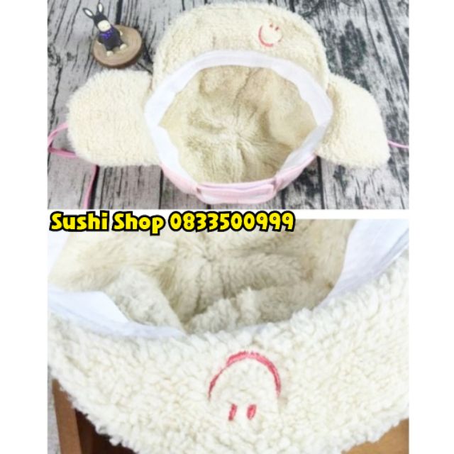 📌 Mũ có dây buộc, giúp không bị bay mũ khi đi ngoài đường và chụp kín 2 tai, giữ ấm cho bé. Khi không cần sử dụng phần chụp tai, các mẹ buộc ngược lên phía trên đỉnh đầu cho bé như trên ảnh nhé. ^^