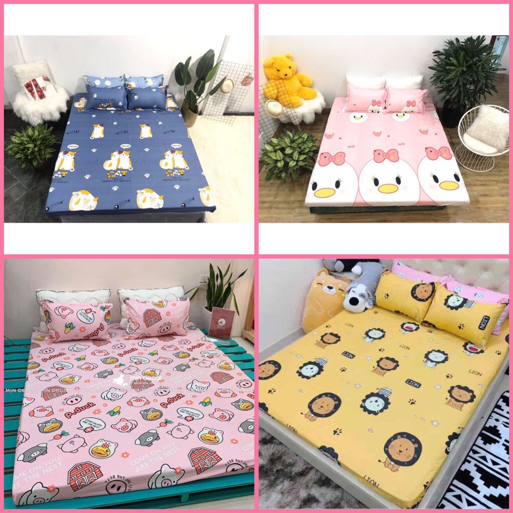 Giới thiệu Bộ ga giường 1m6 1m8 - 1 drap nệm + 2 áo gối mẫu con thú kute