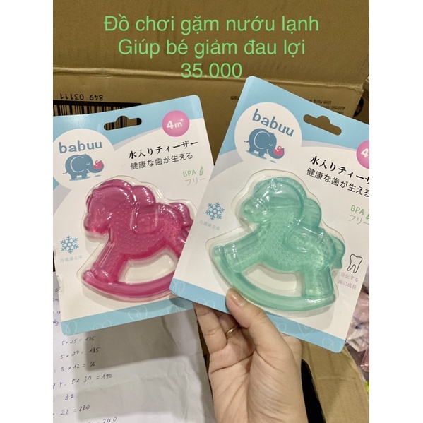 Gặm nướu của hãng babuu 100% làm từ silicon con tha hồ gặm thoả thích. Bên trong là gel lạnh bố mẹ có thể cho vào tủ lạnh làm lạnh sau đó cho bé sử dụng trong giai đoạn mọc răng giảm đau rất hiệu quả đó ạ.