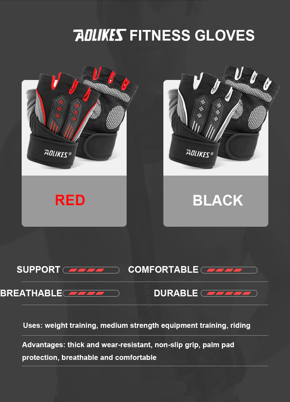 AOLIKES 1Pair Gym Gloves Body Building Sports Fitness Dumbbell Workout Breathable Gloves for Crossfit Weight Lifting Training