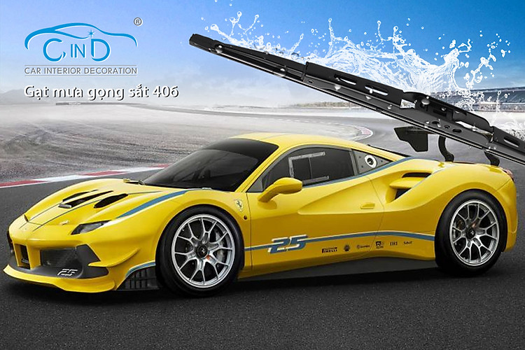 Gạt mưa gọng sắt CIND 406 (16 inch/400 mm) được chế tạo bằng sắt bọc nhựa có độ bền cao cùng với lưỡi gạt làm từ 100% cao su thiên nhiên giúp tẩy sạch nước bám trên mặt kính một cách hiệu quả.