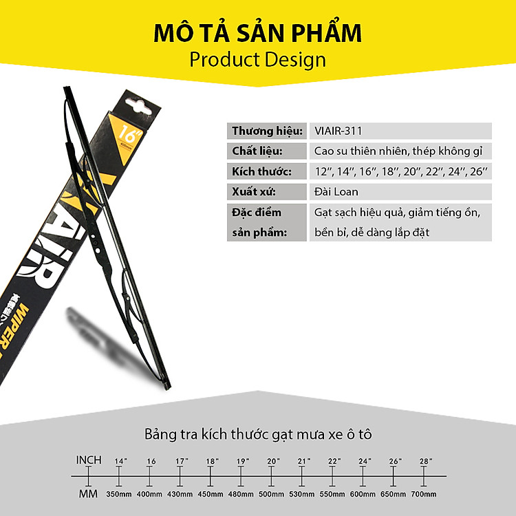 Giới thiệu Gạt mưa gọng sắt VIAIR 311 (16 inch/400 mm)