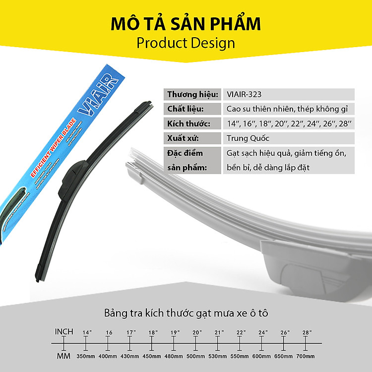 Giới thiệu Gạt mưa không xương VIAIR 323 (28 inch/720 mm)