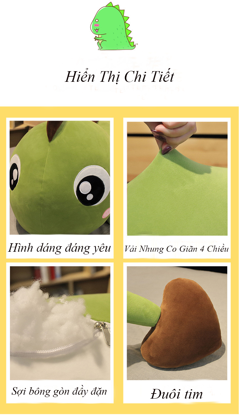 Gấu Bông Cao Cấp Khủng Long Đuôi Tim-Gấu Bông 2T-Gấu Bông Gối Ôm Co Giãn 4 Chiều Siêu Bông Gòn Phù Hợp Mọi Lứa Tuổi An Toàn Cho Trẻ Nhỏ