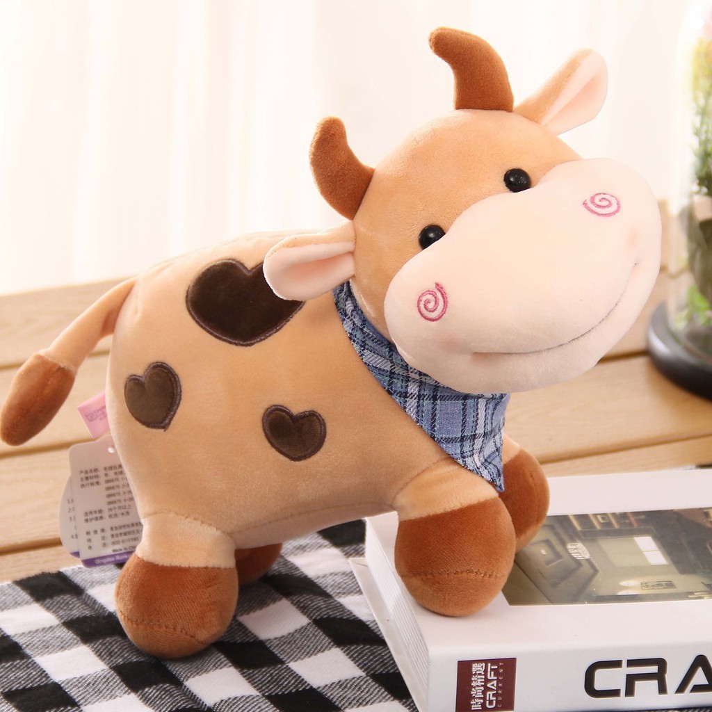 Giới thiệu Gấu Bông Con Bò Đeo Nơ Khăn Tim Mềm Mịn Cao Cấp Quà Tặng Ý Nghĩa Thú Nhồi Bông Nhỏ Cho Bé