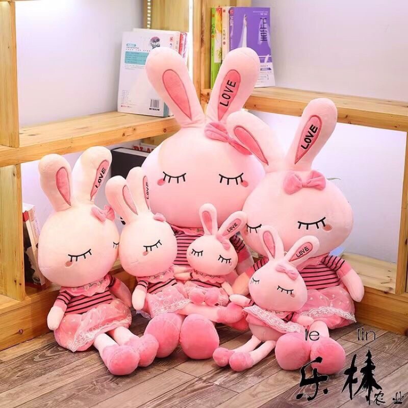 Gấu nhồi bông chất liệu vải Miniso mềm mịn cao cấp - mẫu thỏ mặc váy hồng cute