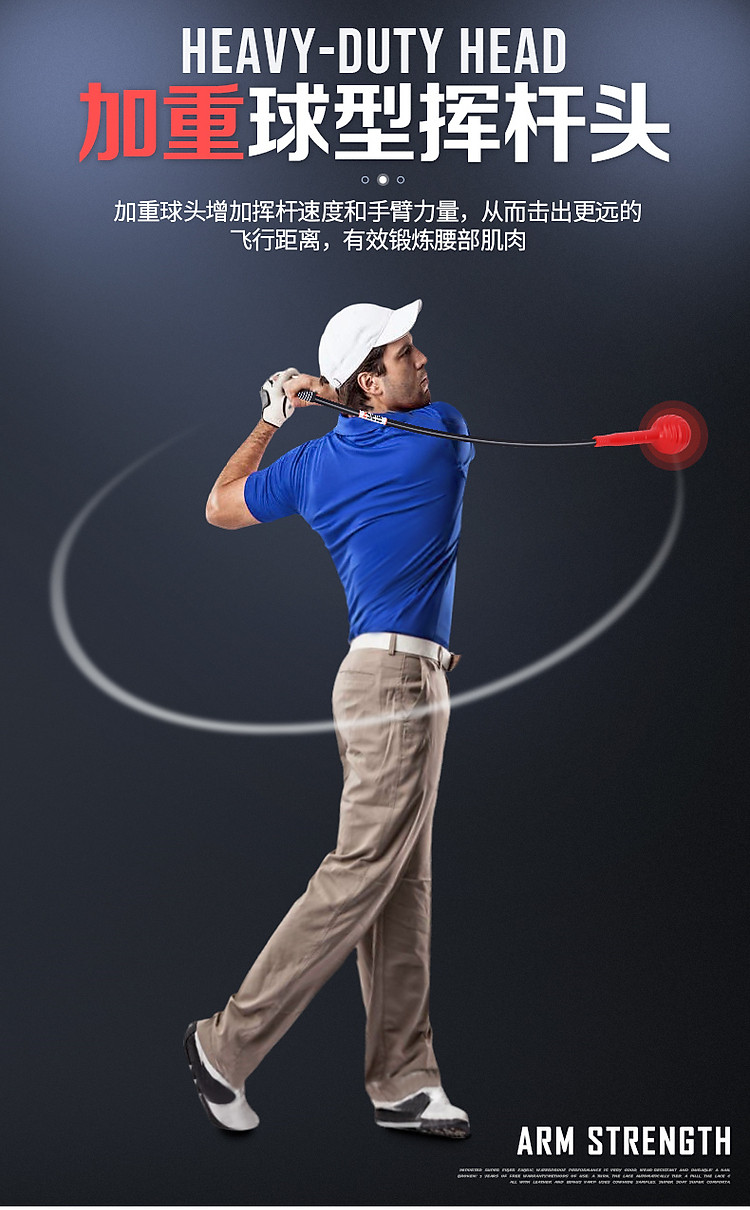 - Đầu gậy thiết kế như một quả bóng Golf và là điểm dồn trọng lực nhiều nhất, giúp các bài luyên tập thể lực được cải thiện hiệu quả hơn.