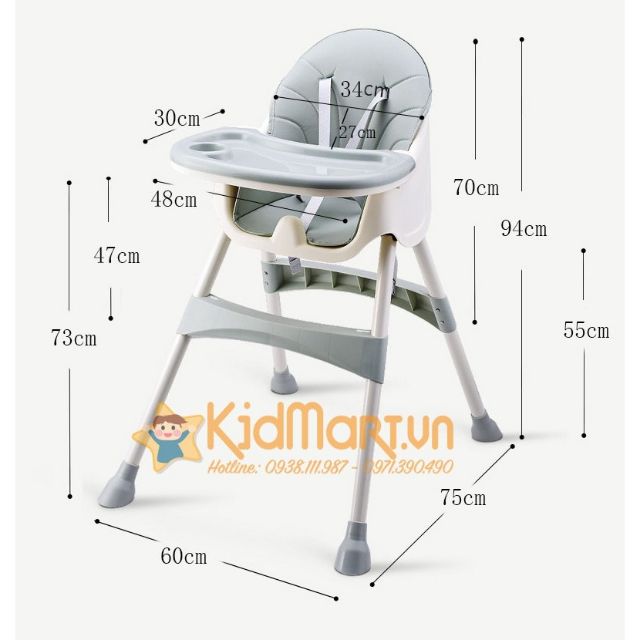- Những dòng ghế ăn dặm bình thường chỉ có thể chịu tải được trọng lượng từ 20 - 25 kg. Nhưng với kết cấu bằng chân thép chắc chắn, ghế ăn dặm UMOO có thể chịu tải được trọng lượng người lớn nặng tới 45 kg.