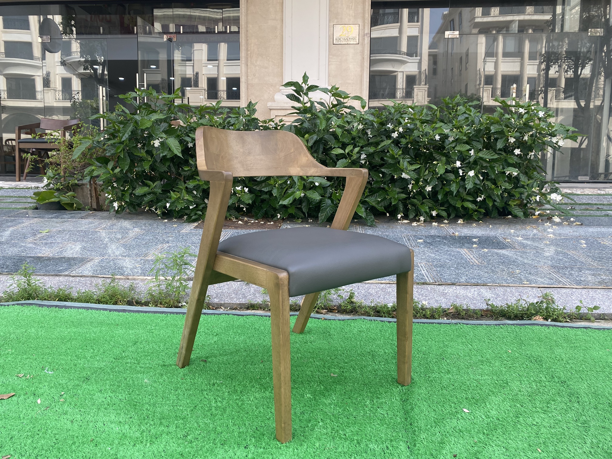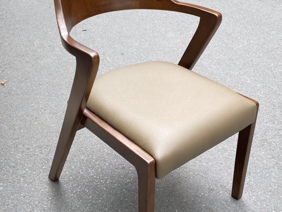 Bên cạnh đó, ghế ăn được sử dụng vật liệu thân thiện với môi trường: Gỗ tẩm sấy chống mối mọt, gỗ được sơn, bóng mịn, thơm mùi gỗ. Mỗi chiếc ghế đều được bọc đệm êm ái, dễ lau chùi.