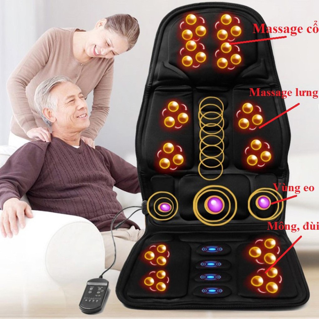 Chất liệu Ghế Massage toàn thân trên ô tô : vải satin kết hợp cotton tạo cảm giác thoáng mát và dễ chịu cho người sử dụng - Công suất: 45W - Điện áp nguồn: 220V - Điện áp qua sạc thực sử dụng : 12V - Kích thước: 1200 x 500 x 20 mm Có thể đặt sản phẩm này ở bất kì vị trí nào mà mình mong muốn như trên ghế sofa, giường ngủ, ghế văn phòng. - Sử dụng đệm thường xuyên cũng là cách tốt nhất để bạn tăng cường nâng cao sức khỏe và hạn chế được bệnh tật nhờ khả năng tạo ra nhiệt độ vùng thắt lưng giúp Massage sâu hơn. - Đệm Massage toàn thân với motor Massage được trải đều toàn tấm nệm giúp người sử dụng có thể được Massage toàn thân, đặc biệt là các vị trí hay bị đau nhức như vai, lưng, mông, đùi và chân… - Đem lại sự thư giãn tuyệt đối cho người sử dụng, giúp khí huyết lưu thông tốt hơn, làm tăng cường sức khỏe và hạn chế mệt mỏi cho người sử dụng. - Phù hợp với mọi lứa tuổi, thanh niên hay phụ nữ đều có thể sử dụng đệm Massage.
